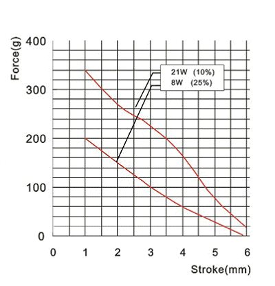 圖解:保持式電磁鐵因為內(nèi)置永磁鐵,所以產(chǎn)品的力量大小并不是和功率的大小成正比,力量的大小與行程的大小、永磁鐵磁力大小有關(guān)。