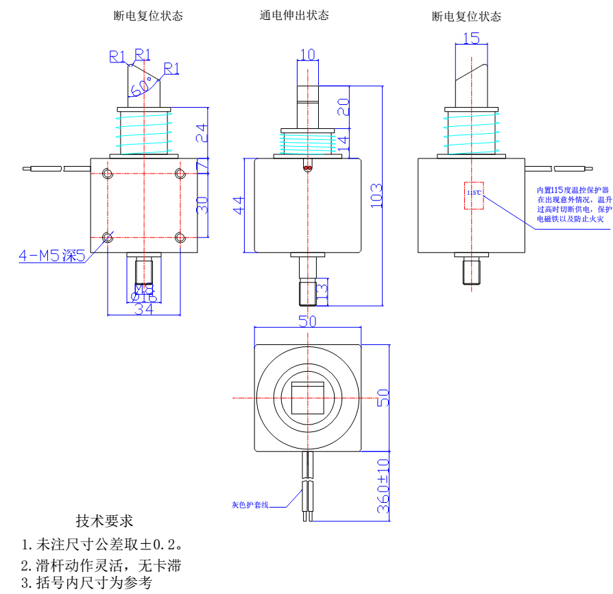 二、高精密門鎖推拉式電磁鐵的具體參數