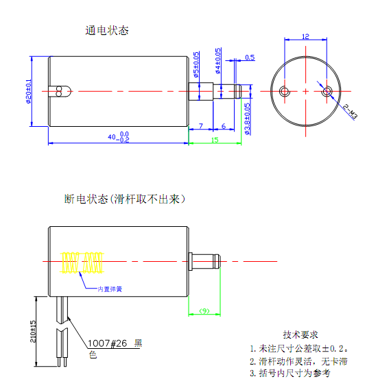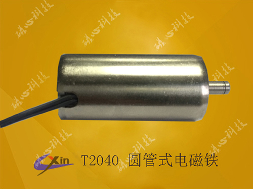 圓管式電磁鐵T2040  是電磁鐵廠家研發、設計的一款內置彈簧的推拉式電磁鐵,在不影響產品性能的前提下,把復位彈簧內置,有效的節省了電磁鐵整體尺寸,提升了客戶空間的使用