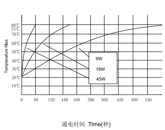 三、U1040推拉式電磁鐵通電時(shí)間和溫升曲線圖: