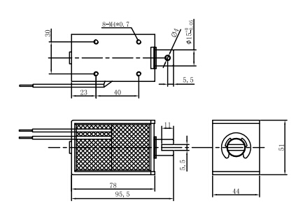 橫向:代表電磁鐵行程                 單位為毫米(mm)