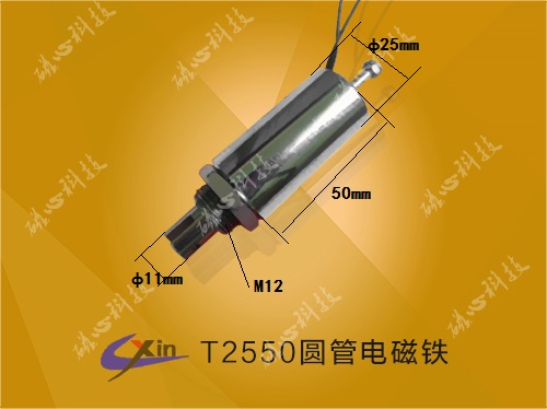 東莞磁心科技電磁鐵廠家,批量生產T2550圓管電磁鐵。公司位于東莞市,大批量制造圓管式電磁鐵、推拉式電磁鐵吸盤式電磁鐵、旋轉式電磁鐵等,生產的T2550圓管式行程長、力量適中廣泛用于自動化和紡織機械產品上。