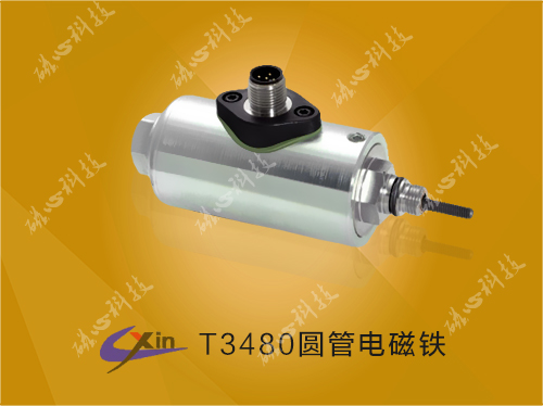 T3480圓管電磁鐵電磁鐵廠家針對客戶專門定制的一款微型推拉式電磁鐵,產品的直徑34mm,高度80mm,采用內置彈簧,可以自動復位。電磁鐵外殼采用高精度CNC加工成型,出